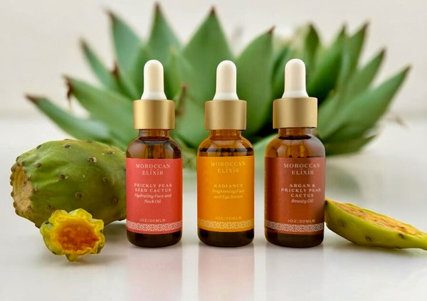 MOROCCAN ELIXIR brings ancient tradition to the forefront of beauty. A tradition kept alive for thousands of years by the Berber Women of Morocco. A main source of independence and economic security for this vibrant community is through the production of Argan oil and Prickly Pear Seed oil.